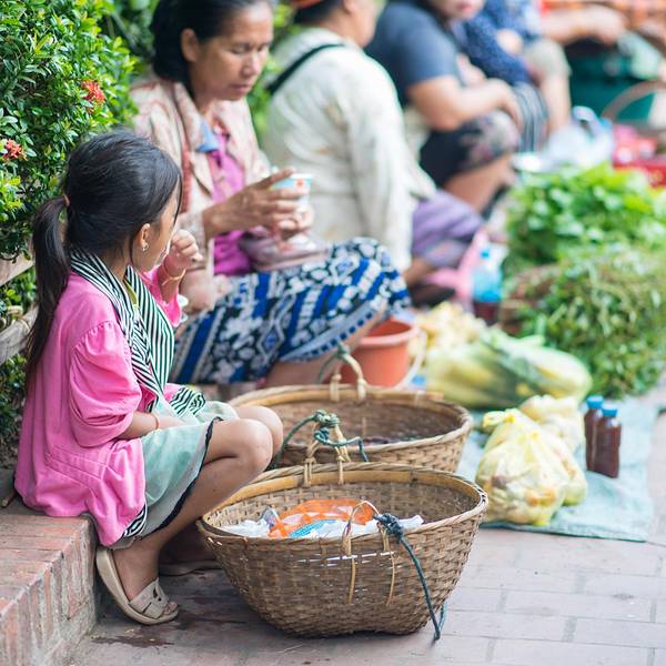 在参观布施后的游客退去后,琅勃拉邦的早市正热闹的开场了!