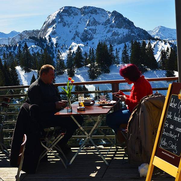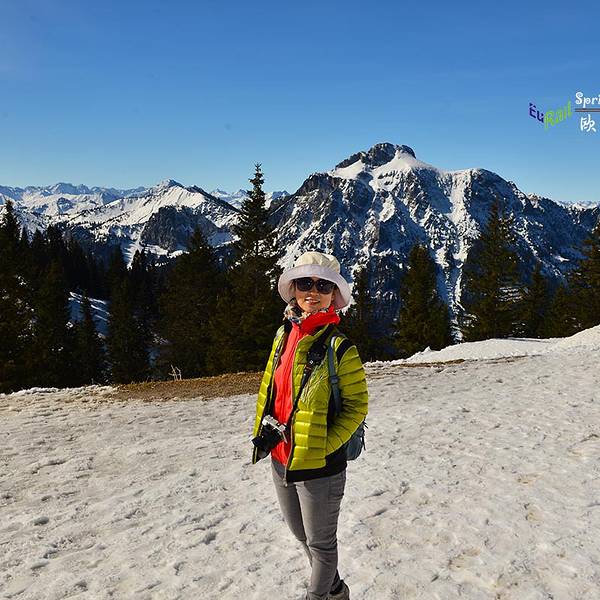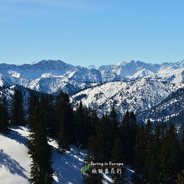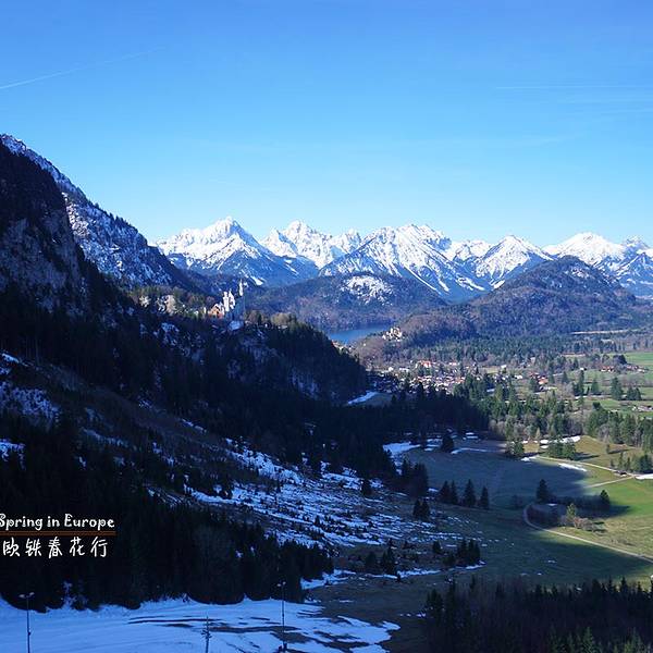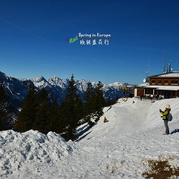 深色的这个湖叫班瓦尔德湖(Babwaldsee),因为湖水较深而显示出湛蓝的颜色。缆车在短暂的停留后继续驶向山巅的终点,随着高度的上升,远处的施万高镇和福森镇渐次在眼前展开。抵达山顶,此时俯瞰北面的两个湖面,色彩各异,环肥燕瘦。泰格尔山的山顶,依旧满是积雪。太阳映照在头上,气温并不很低,体感不冷,但是脚下踩在雪地里的感觉还是很实在的,让人一下子又仿佛回到了两个月前在芬兰和瑞典踏雪追逐北极光的日子。山顶的峰峦,都被厚厚的积雪覆盖,平整得没有任何脚印。泰格尔山有很多条徒步的线路,不过此时,估计只有滑雪板才可以走吧?我们没有准备,普通的运动鞋在这里几乎寸步难行,而其他专程来滑雪的都是上山就套上了滑雪板开始出发……面对雪峰,我们只能艳羡那些滑雪者了,不过山上的空气那是极好的,所以就安心看景,呼吸纯净新鲜的氧气,感受这里白皑皑的宁静和安详吧。山脚下,满是红褐色屋顶的德式建筑组成的福森小镇。远处的那个湖泊就是霍普芬湖(Hopfensee),是我们下午要去游览的目的地。小心翼翼地在雪地里挪动自己的步伐,找个好的角度观景和拍摄照片。山巅的建筑就是泰格尔山的缆车站和山顶餐厅所在。站在这里,就可以遥望到阿尔卑斯山脉的众多山峦雪峰,连绵不断,迤逦蜿蜒。在春日还能够在艳阳下赏到如此雪景,也算不虚此行。这是我在山顶攀爬到的最高点了,缆车站也变得小小的,如同在雪地里的道具。总体而言,初春时的游客很少,才能保有这些未曾被践踏出脚印来的厚厚积雪。夏天,从泰格尔山是有步道可以直接徒步前往新天鹅堡的,大概总长5公里多的山路,三四个小时步行就能穿越而至。山巅,有一家餐厅,极好的景观位置。在这里休憩下,晒晒太阳,喝个咖啡,来份美食,真正是人生的一大享受。当你老了,当你闲了,可以带上自己的爱人,在山巅雪峰前,和煦的暖阳下,享用一顿精美的餐食,在这里留下最美好的记忆。这就是在山巅餐厅的座位上拍摄到的阿尔卑斯山脉风光,仁者乐山智者乐水,山水之乐,吾心足矣。餐厅门口的装饰和菜单、价码牌,这里的菜品价格并不比镇上的高很多,但是拥有完全不一样的景观,推荐有时间来这里的朋友安排一次就餐,会有很棒的旅行体验。身处美景,自然想留下自己的倩影。不过在这里拍照真的非常需要注意安全,因为积雪白天在融化,晚上又会结冰,因此很是湿滑,而自然保护区本身山边没有任何围栏等设施,一步过去就是万丈深堑。所以,切记要与边坡保持一定的安全距离。下山前,根据计划,将相机的镜头换成了80-400,以便拍摄新天鹅堡的倩影。先把远山雪峰拉过来入境。瑞士和德国的雪峰都是美极了的。 展开