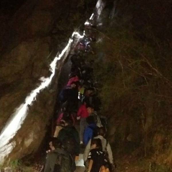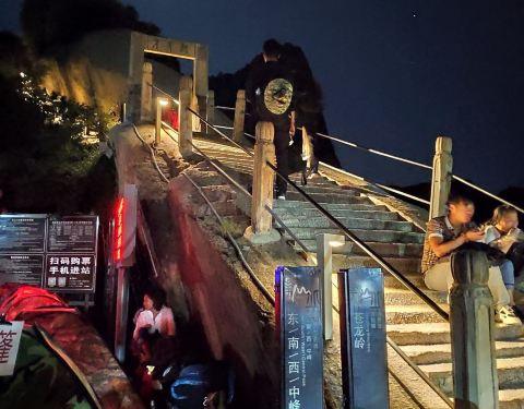 因为是晚上看不到山上的宏伟。山脚下吃了饭10点5女1男就准备爬了。