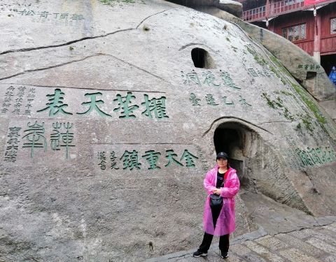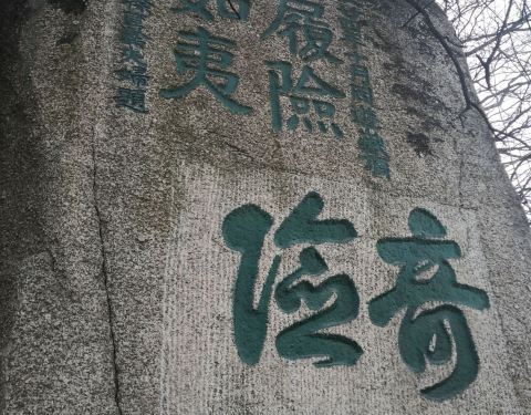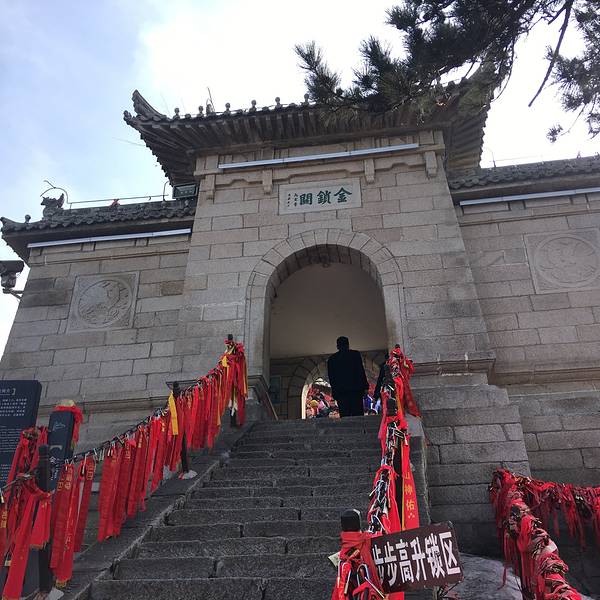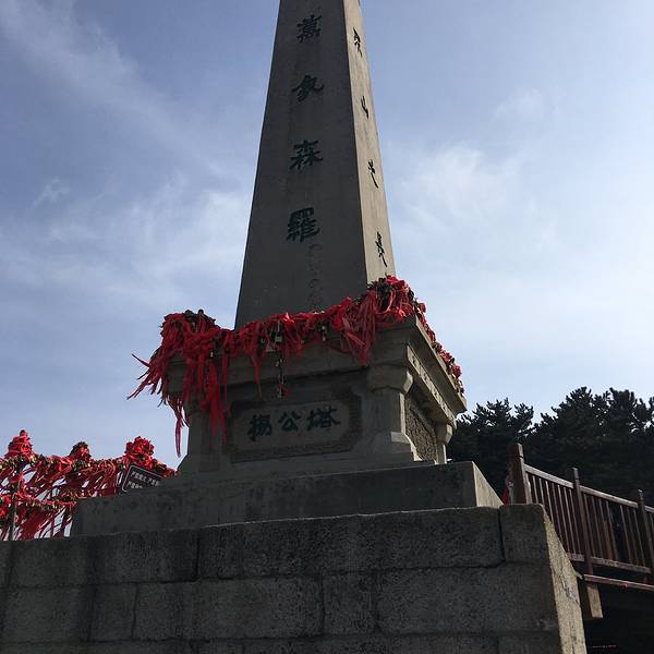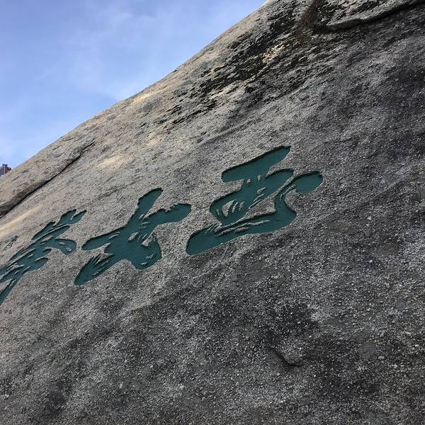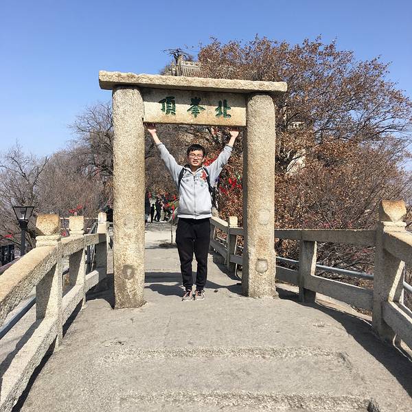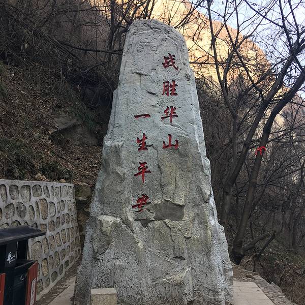 站在台阶上偶尔往后一撇,都很佩服自己,那种心灵的震撼,用言语和照片难以形容。超喜欢的一座石碑早上6点起床坐第一班地铁去西安北站赶7:20的动车(车上看到了日出),到了华山北站后坐免费的环城公交1号线到游客中心,虽然是淡季而且不是假期,但人流量依然很大,天气很好没有下雨,坐景区免费大巴就去了玉泉...早上6点起床坐第一班地铁去西安北站赶7:20的动车(车上看到了日出),到了华山北站后坐免费的环城公交1号线到游客中心,虽然是淡季而且不是假期,但人流量依然很大,天气很好没有下雨,坐景区免费大巴就去了玉泉院,一下车就看到陈抟老祖的石像,之后就是玉泉院的大门(自古华山一条路路口)。从玉泉院开始到五里关是漫长的上坡路,此处无台阶,也是搭讪聊天的好地方,路上有来自内蒙古的汉子,也有重庆的妹子,还有各地即将开学的大学生们……开始许多人互相唠嗑一起走,后来三三两两就分掉了,我们和来自郑州大学的两位学长一起走。我体力比较好,就在前面和内蒙古的几个大叔分享旅行经历,讲嵩山,讲泰山,讲呼伦贝尔大草原,很快就到了五里关,也就是从这里开始,登山之行才拉开了帷幕。