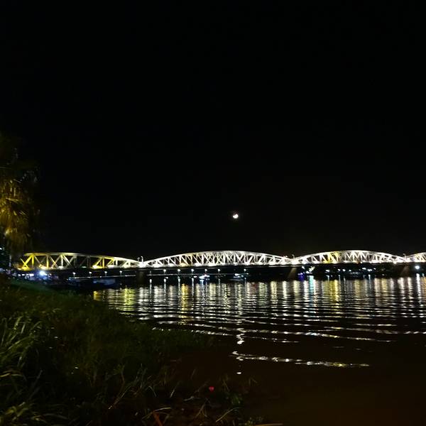在桥侧看日落是顺化的美景之一。但是当时所建之桥以毁始建于1897年连接香河两岸钱场名桥是去到顺化皇城的必由之路。但是当时所建之桥以毁。这座桥是1930年代重建的。在桥侧看日落是顺化的美景之一。