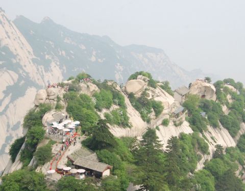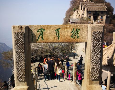 华山擦耳崖景点,只有一尺来宽,游人走到此处,身体要紧贴崖壁慢慢侧身而过,脸面蹭在崖壁上才走得过...华山擦耳崖景点,只有一尺来宽,游人走到此处,身体要紧贴崖壁慢慢侧身而过,脸面蹭在崖壁上才走得过去,传说这应该就是洪七公和欧阳峰被埋之处。