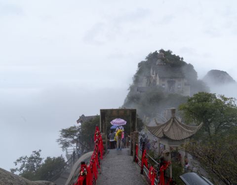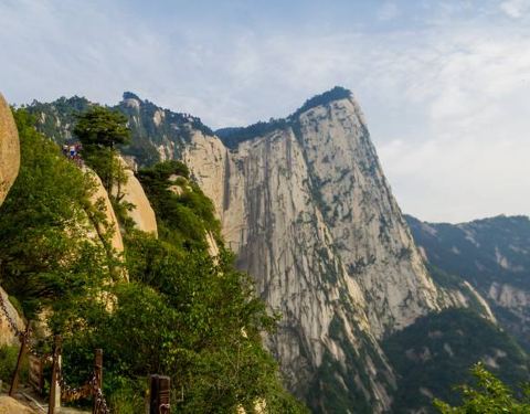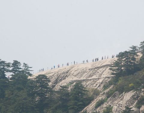 擦耳崖是华山北峰向主峰前行的一条险路,因一边是万丈深谷,一边山脊,宽度仅2人可行,幸好的这条路...擦耳崖是华山北峰向主峰前行的一条险路,因一边是万丈深谷,一边山脊,宽度仅2人可行,幸好的这条路是单行向上的,否则人流很容易堵在这里的。