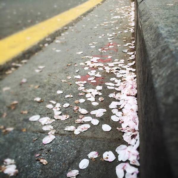 当我们第二日清晨再来此时,偶尔吹来的风使得路边的部分樱朵开始掉落。许多人都知道七日樱谢的说法,也听过秒速五厘米的花语,看见那飞舞的樱花雨时,你似乎才能明白,遇见樱最幸运的无非是——