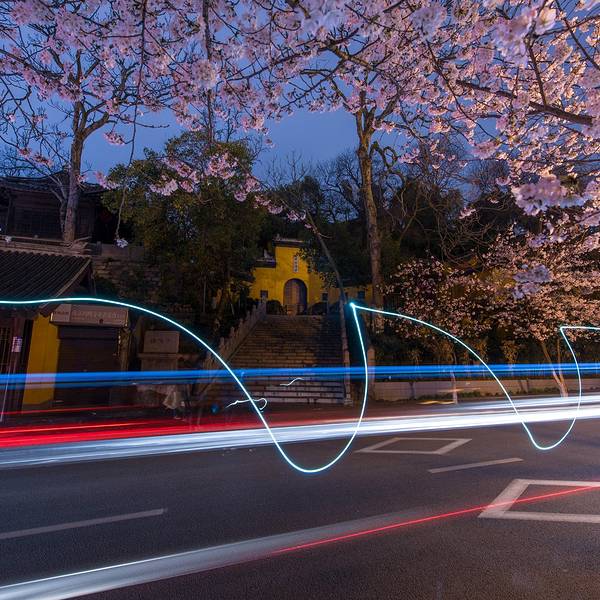 鸡鸣寺交通:鸡鸣寺可以乘地铁3/4号线到鸡鸣寺站站步行即可到达,不过随着摩拜等单车的快速发展,骑行也是一个不错的选择。因为白天游人如织,大部分的本地摄影人,都会采取夜拍的方式,去表现樱花之美,近两年夜游看樱花的人也很多,所以摄影人大部分都是早晨3点起床4点就位然后拍摄至日出。2016年的春天,我白天踩点瞄准了这个机位,购置了LED灯,夜晚布灯邀请路过的一对情侣,拍摄了这张《倩女幽魂》。这个机位是一个不错的拍摄夜樱的好地方,你只需架好机位,等待一辆公交车的经过即可。鸡鸣寺是个拍摄日出的机位,因为早晨的第一缕阳光,会照亮鸡鸣寺的外墙,金光闪闪,十分美丽。这也是拍摄冬季日出的好地方,下上一场雪,更有穿越时空的味道,因为我起不了那么早,所以只能在这里拍摄了日落。如果想在樱花时节在此拍摄樱花大道的车轨,那么最好早点起床,从太平门的城门登上城墙走到这里赶在蓝光时刻拍摄。如果是晚上拍摄的话,城墙会在6点关门,你就只能拍摄完樱花夜景后,从太平门段出来。如果不想早起晚归,不想出太平门段上下步行,那么解放门城墙下的这个小缺口也可以拍摄到鸡鸣寺樱花大道,当然视角要差上一些。只需步行沿着下面的阶梯走上来即可。在城墙上可以拍摄鸡鸣寺和奥运五环的标志,形成古今的碰撞,但是这样的代价机就是付出30元大洋,当然一张公园年卡,你可以免费上去拍摄。除却鸡鸣寺的樱花,南京林业大学的樱花也同样出名,古色古香的图书馆配上樱花大道,置身其中,仿佛回到往昔的旧时光。 展开
