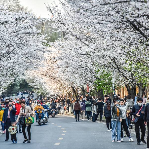 地址:鸡鸣寺路1号(鸡鸣寺樱花路)...前些年还默默无名的鸡鸣寺樱花路,如今是南京最著名的赏樱之地,雨过天晴正逢周末,短短402米的樱花大道游人络绎不绝人潮汹涌人声鼎沸,白天此路段封路,成为赏樱的漫步大道。