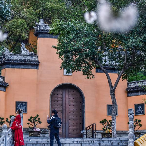 寺院外可以处处看到游客在门外拍照,欣赏花月下的鸡鸣寺真的太爽了。