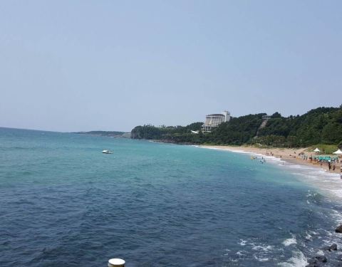 海水很蓝,人很多,很多韩国人在这里度假,太阳下还是很晒的,要注意防晒。非常美海水很蓝,人很多,很多韩国人在这里度假,太阳下还是很晒的,要注意防晒。跑男去过以后这里就更出名了,不过没有遇到海女。非常美。