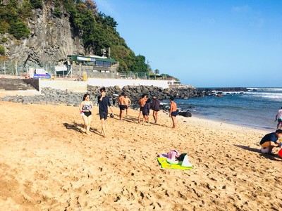韩国人比较注意环境卫生,整个海滩非常干净。海水很蓝,沙滩也不错。是济州比较好的海滩海水很蓝,沙滩也不错。 海边游泳的人也很多,还能看到冲浪的人。 韩国人比较注意环境卫生,整个海滩非常干净。是济州比较好的海滩。