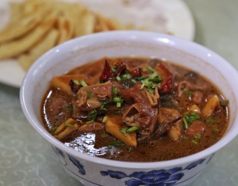 想不到在这里还有一家比较地道的老北京馆子,从小吃到炒菜应有尽有,点了鸡里蹦,醋溜苜蓿和炒合菜,还来了碗豆汁,味道说不上很正宗,但绝对比一般馆子地道,好久没喝豆汁了,就着焦圈和咸菜,地道