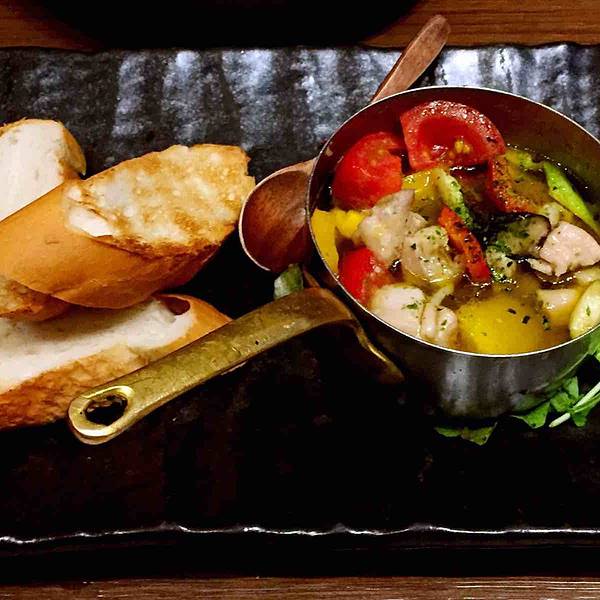 又来吃炉匠咯。炉端烧老字号,很多人想吃日式炉端烧都会想到这家。工作日晚上也坐了8成满。连锁店,上海北京都有分店。服务员态度很好,会主动来询问对菜品的满意程度。 海鲜蔬菜色拉 开胃菜,一大盘端上来,色彩缤纷、种类繁多。三文鱼、生菜、小萝卜、鱼籽、甜椒。。 盐焗蔬菜鸡肉锅 新品,没想到小小一锅,口味却很嗲。橄榄油调味,鸡肉喷香却不油腻,里面的菌菇和甜椒也吸收了橄榄油的香气。 芋艿田乐烧 以味增酱调味的糯芋艿。 北海道辣味海鲜锅 热闹缤纷的一大锅,微辣的味增汤口味。竹轮、糯米福袋、白菜、大扇贝、小蛤蜊,海鲜品种多,汤底自然鲜美。 刺身拼盘 北极贝 三文鱼 扇贝,刺身新鲜甜美,现磨山葵吃起来丝毫不辣。 烤牛舌 Q弹有嚼劲的切片牛舌,烤至变色,是炉匠最爱的几道菜之一。 特大斑节明虾 比手掌还大上一大圈的斑节虾,简单的盐烤就很美味,品尝斑节虾的天然海味。 炭烤甜玉米 清甜软糯的甜玉米,一咬一泡水的口感,一块很快秒掉了。 烤年糕是特色,紫菜包裹着像个小襁褓。 最后的甜品黑糖布丁虽然是赠送的。但也一样好吃。黑芝麻和天然黑糖调味。原味的牛奶布丁是天然的乳香味。 梅酒,日式料理的绝配,品一口冰爽的梅酒,吃一口牛舌,生活也变得更美好了。