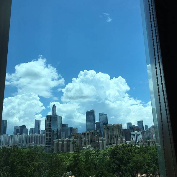 我们换了一家椰子鸡 比前几天吃的高大上一些选了靠窗的位置~深圳的天空真的很美