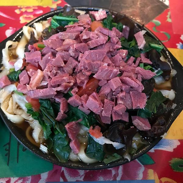 今天的早饭在客栈附近解决。牛肉刀削面15元,面给的真的很多
