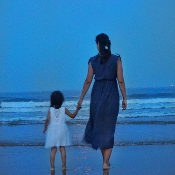 晚饭后天气凉爽,我们穿过酒店花园去银沙滩吹吹海风,