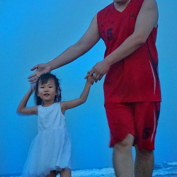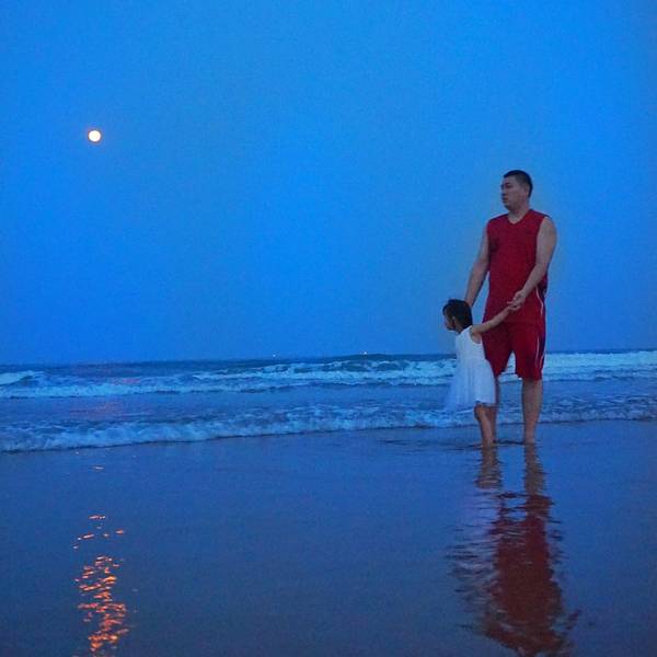 赵小猫着迷于踩浪花,玩地不亦乐乎。夜色渐凉,