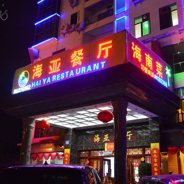 日落时分离开景区,晚餐我安排的是海亚餐厅,驱车前往。在回程的路上路过一个菜场,停车买了些菠萝蜜和芒果,新鲜的菠萝蜜的味道真的非常好吃,芒果由于春节季节不对口味一般般而且价格也不便宜。观察导航显示靠近海边的三亚湾路,预想吹着海风沿着海岸线开一段。可是结果这是我今天做的最大的错误决定,晚上的三亚湾路一排都是海鲜餐厅,而道路上全是车全是人!仿佛整个三亚的游客都集中于此了。无奈受堵,好久才逃脱出去。 好不容易到达海亚餐厅,老派的霓虹灯大招牌很是显眼,上楼找位置坐下。翻看菜单价格跟预期的有点差距,个人感觉有点小贵,点了一斤文昌鸡,再配上几个小菜以及此行必点的生菜也算丰富了,离开了文昌才吃上文昌鸡这也是挺搞笑的。再等菜的间隙,环顾周围,整个大厅坐了大概一半左右,感觉多为本地人。虽说菜价不是很便宜但是菜的口味的确还是可以的,最大的收获是三碗米饭,分别是芋头饭、椰子饭和鸡油饭,由其是鸡油饭最受我的中意,鸡油跟米饭的搭配冲击出非常意外的味觉体验,令我至今回味。