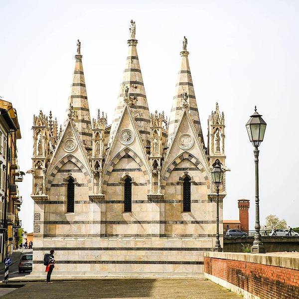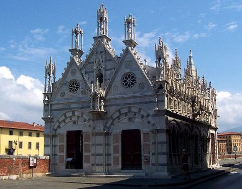 路过一个小房子,特别袖珍,似乎是教堂,不过正在维修,后来才知道这是圣母玛利亚斯皮那教堂路过一个小房子,特别袖珍,似乎是教堂,不过正在维修,后来才知道这是圣母玛利亚斯皮那教堂。这是比萨最小的教堂,这座充满了浓郁哥特式风格的教堂修建于13世纪,至今顶部的雕像依然栩栩如生。