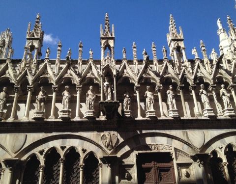 没有进到里面参观,只是看外面,不错。但是却很有特色。外观非常精致华美,雕刻很细,属于哥特式风格的教堂不大的教堂,应该是比萨最小的了。但是却很有特色。外观非常精致华美,雕刻很细,属于哥特式风格的教堂。没有进到里面参观,只是看外面,不错。