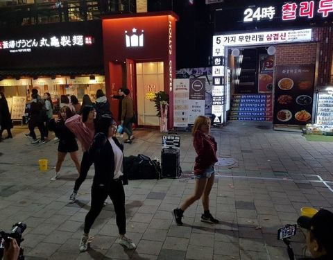 如果你在周末来这里的话会看到街上充满了乐趣和由初露头角的韩国流行音乐表演实习生。周六我们去地铁站时,9号出口挤满了人。除了光顾商店和咖啡馆外,你还可以花一个美好的下午在周围散步,观看各种各样的表演者的演出。虽然拥挤,这个地方还是很有秩序的。这是了解韩国流行文化并分享乐趣的好去处。