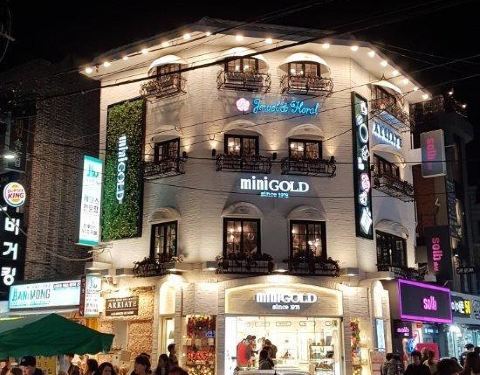 弘大地铁2号线9号出口往前经过一个十字路口,再向前行走300米左右往左拐再走100米左右