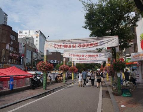 年轻人聚集的区域 由于临近弘益大学,有许多的大学生会在附近的广场表演。值得前来