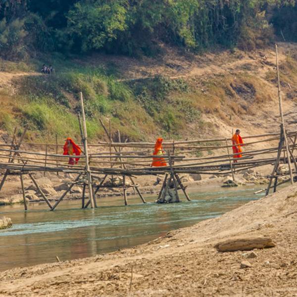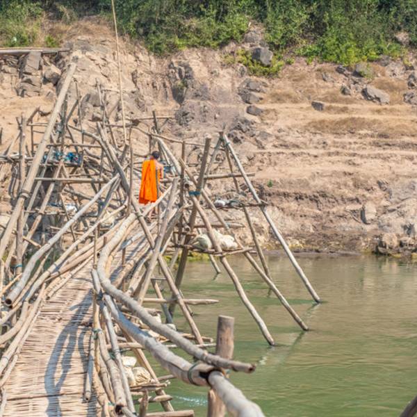 琅勃拉邦的湄公河之上,有两座竹排搭起的一座老桥,虽然历史悠久,却依然摇曳于这条奔腾的河流之上。通过老桥,可以前往隐秘在湄公河另一侧的静谧村庄,体会更加宁静的乡村生活。 由琅勃拉邦老城区骑着车子,沿...