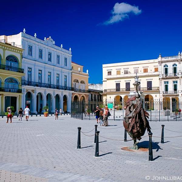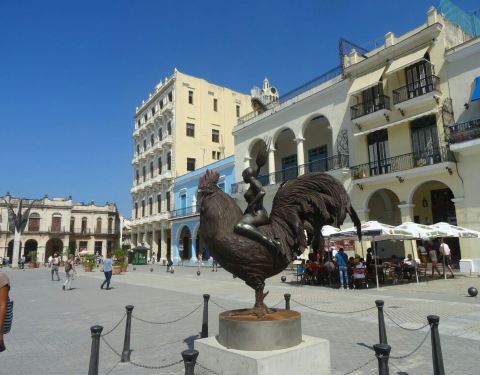 这里非常像欧洲的广场,广场四周都是欧式的建筑,广场周围有著名的女战士骑公鸡像和雄狮喷泉,这里经...哈瓦那老广场是哈瓦那老城著名的广场之一,这里非常像欧洲的广场,广场四周都是欧式的建筑,广场周围有著名的女战士骑公鸡像和雄狮喷泉,这里经常会举行集会和庆祝活动,平日里也十分的热闹。