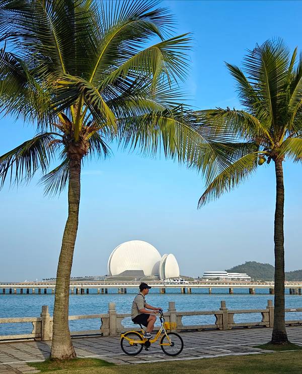小城韵味,藏在海岸线的慢节奏里。情侣路串联起爱情邮局蓝白灯塔、珠海渔女、海滨泳场、日月贝等标志性景观,却没有都市商圈的喧嚣拥挤。中段香炉湾沙滩细腻平缓,清晨看日出染金海面,傍晚等晚霞铺成橘红;南段可远眺港珠澳大桥的壮阔,北段野狸岛安静清幽。步道宽敞平整,共享单车与观光巴士随上随下,沿途茶座、长椅错落,随时能坐下吹海风、看浪花,是珠海这座海滨小城最温柔的注脚。