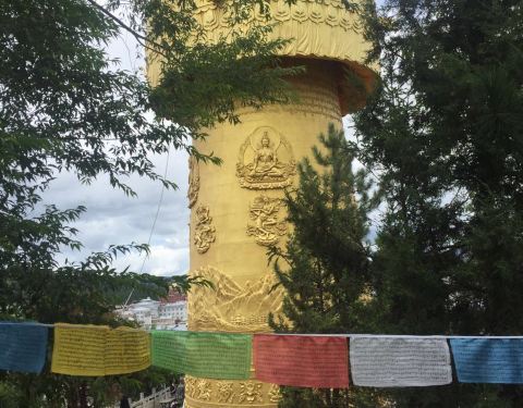 走上去转经筒已经气喘吁吁,要一群人转才能转动,转了三圈。