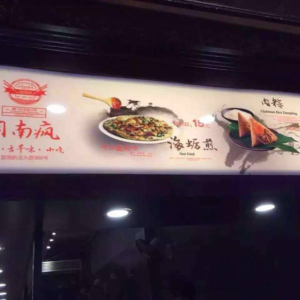 沙茶面,海蛎煎,花生汤,鲨鱼粥,猫儿粥,炸五香,这些都是厦门的古早味小吃,每一道小吃都有着一段有趣的历史,很有特色。干净整洁的小店,味道很正宗,食材也很新鲜,开放式的干净厨房,有着武侠和唐诗,结合着厦门的风情,独自形成了十二道疯味,在店里不用钱买东西,用刀币,挺有意思的一家小店。海蛎煎炸五香沙茶面花生汤