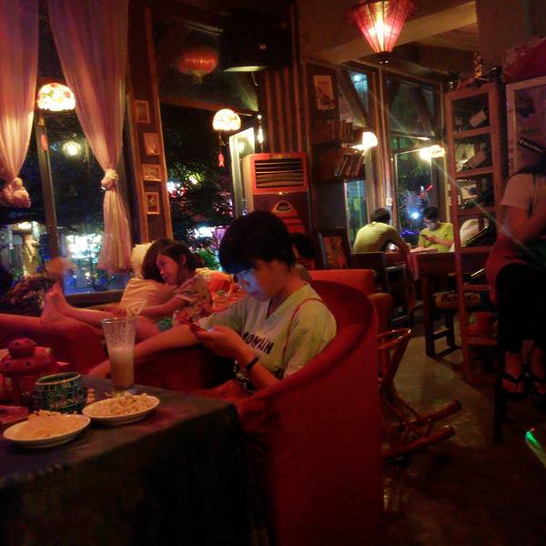 在阳朔有三家店,总店和二店是酒吧风格,三分店的风格是清吧feel,外面装修的很有意思,有驻场还比较给力的样子,听听歌比较不错