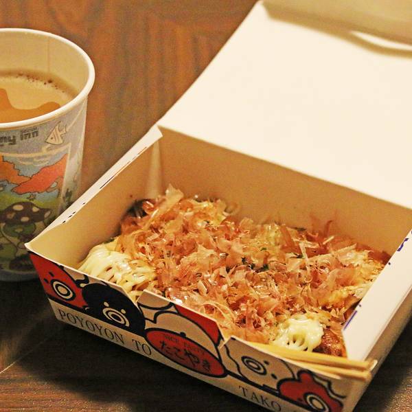 两点多走下山,在车站坐上了回小樽的公交车,两点半到了小樽站前。时间还很早,于是决定坐小樽环游巴士,去补前一天漏盖的章。环游巴士一路坐到北一哨子馆和堺町通商业街的观光咨询处补了章。然后去童话十字路口的银之钟咖啡馆。这里喝咖啡杯子可以带走,挑了一个650的咖啡杯,又要了一份400的拉面,充充电休息。在咖啡馆坐了半个小时左右,赶四点半的巴士,到小樽运河站,这时候是下午快五点,天已经几乎完全黑了。拍了两张运河夜景,步行回酒店。路上碰到卖章鱼小丸子的小车,350日元买了一份带回酒店吃。超级好吃!!旁边是多米酒店大厅的免费咖啡。 回到酒店休息了一下,去酒店二层的温泉泡泡。这家的温泉比古川酒店的温泉要大一些,室内有两个温泉,户外一个,另外有一间桑拿室。可惜木有照片~ 晚上泡个汤放松一下身心,出来再吃一份免费拉面,也是很好的享受~今天虽然天气不给力,但行程还算圆满,明天要回国啦!