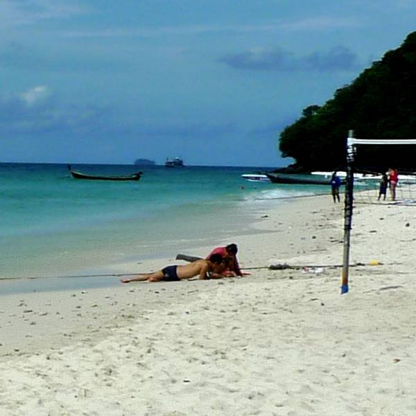 ,里面都是冰块,雪藏这苏打水,果汁等东西,不过没有酒精类饮品,可能是贵,也有可能是信仰的缘故吧。一路上,波浪比较大,有个孕妇受不了,脑袋伸出去图,还有的帅哥到船前方去看风景,小看了太阳的威力(防晒油对安达曼海的紫外线完全不起作用),一身的腱子肉全给烤焦了,后面几天都动弹不得。好不容易登上了岛,发现虽然一路辛苦,但是还是很值得的。海滩很漂亮,小岛也比较安静,人不算多。水质和沙滩,比起普吉岛主岛的芭东海滩这一类海滩,好的不是一点半点。接着救生员出场了,有句话我至今记得:“你们不要以为自己很会游泳,我叔叔也很会游泳,我三岁的时候他去游到现在还没回来。。。”,很多人听完救生员的训导,穿上救生衣就扎到海里去了。海水很温和,阳光也没那么毒了,躺在海上飘着飘着,很惬意~岛上的资源比较匮乏,一些淡水和食物都靠船运输,游完泳以后,冲澡的水也是海水循环再造的,所以感觉洗不干净身上的盐分,海风吹干身子后,穿上衣服,有种怪怪的感觉。 展开