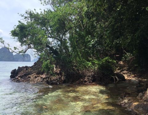 珍珠岛(Pearl island)距离普吉岛主岛有一段距离。根据当地船夫的说法,该岛的名字源于“佛祖在安达曼海洒下了一串珍珠”。我们从普吉岛东南部的chalong bay出发,乘坐快艇,行程约1个多小时到达(当时没有大船...
