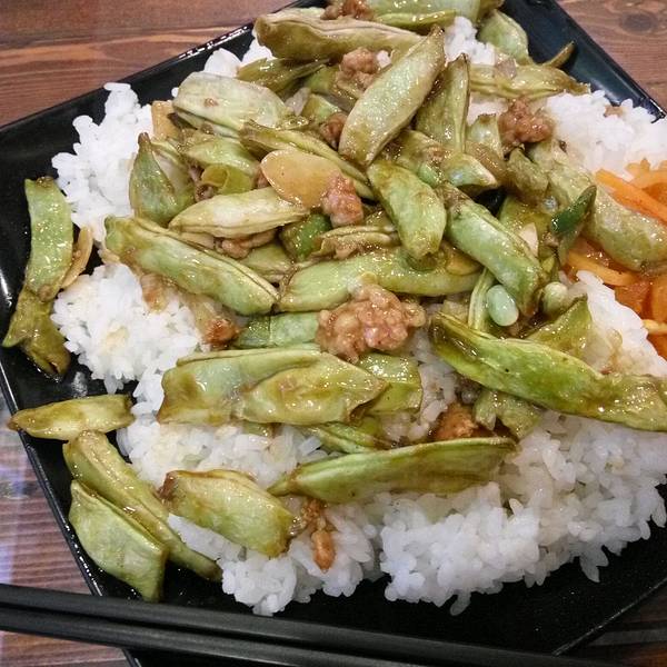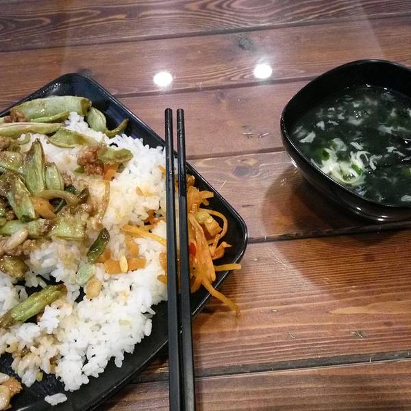 在附近上班,所以是他家的老客户了,自己认为他家的美味是附近几家店里面是最好吃的了,感觉他家的饭看起来特别的精致,和别人家的饭比起来就愿意吃,昨天在他家吃了一份,芸豆肉末盖饭,等了大概也就十多分钟吧,因为叫外卖的人特别的多,所以等的时间稍稍的长了一些,但是这不是阻挡我得理由,老板娘把饭给我端上来以后,我一看见那个油光锃亮的豆角,再加上豆角稍稍干瘪的样子,我得口水就直流了,老板娘有为我端来了一碗他们店里的免费的汤,别看是免费的,但是也飞非常的精致,非常的有食欲的,大米饭都是采用的盘锦大米,非常出名的大米,而且他家大米的价格都是很贵的,言外之意就是大米很过关,大家放心使用就可以了,芸豆给的还是很多的,我一个人基本上都吃不了,或者大米饭一起吃,真香,大米饭上面老板娘还给了我一点小咸菜,真的是太好了,我是最爱吃咸菜的认了。就餐环境非常的优雅,他家除了盖饭之外还可以炒菜,火锅什么的,品种挺多的,地点就在东关街市骨科医院那里,坐公交车的话是528路在市骨科医院下车就是,还可以坐,101路在大同街下车,从旁边的胡同下午就可以看见了。