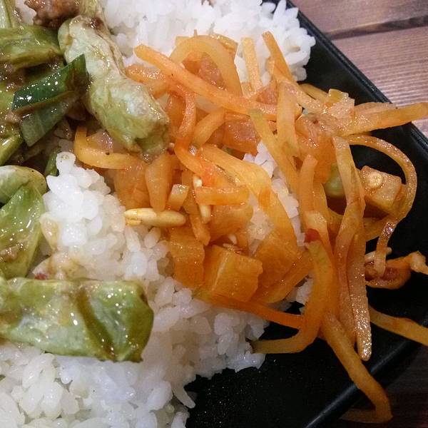 ...或者大米饭一起吃,真香,大米饭上面老板娘还给了我一点小咸菜,真的是太好了,我是最爱吃咸菜的认了