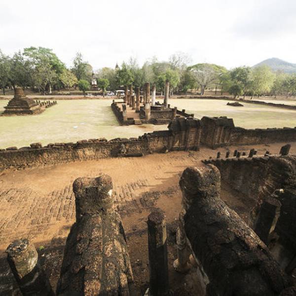 西沙查那莱距离素可泰约 50 公里,需直接到车站购票,行程用时 1 小时左右。也可骑摩托车或者自驾车前往,全程约 60 公里。素可泰新城古城均有摩托车租车点,但并不多,最好提前预租,200THB/ 天。