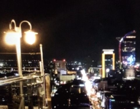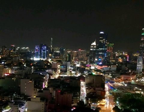这里绝对是看夜景的好地方,价格也不贵,没有最低消费,买一杯酒就可以坐着看风景了,晚上的金边绝的还是挺漂亮的,也就是市中心这里。