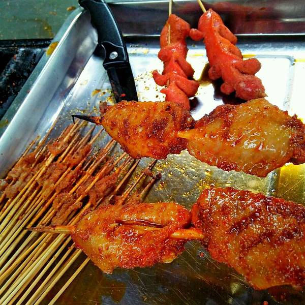 推荐买小肉串和烤翅,烤出来很好吃 过了这个走廊还有一个湖泊。但是要50块钱