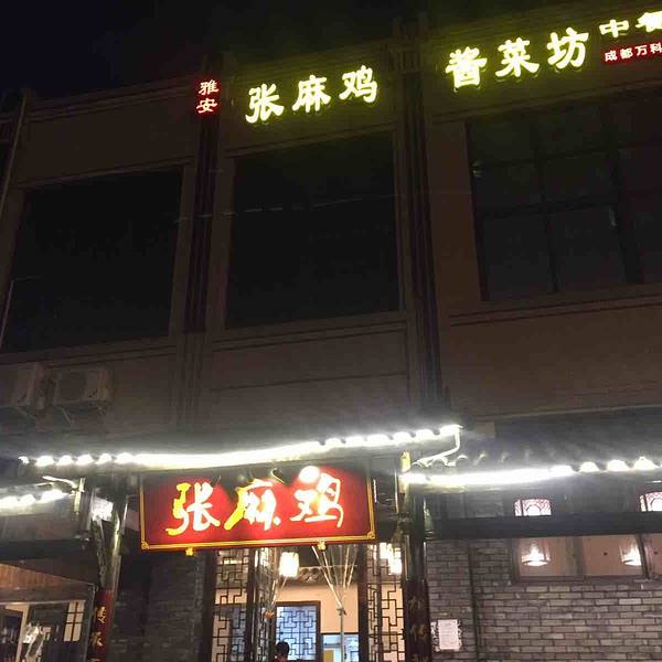 小区楼下新开了一家餐馆名字叫“张麻鸡”,应该创始这道菜的人姓张吧,开张的前一段的时间还打8折优惠。店铺就在成都市成华区万科路197号,旁边就是万科魅力之城,旁边有一个益名菜市场,不是很好找,位置比较偏。店铺的装修很简单,门口“张麻鸡”几个大字,左边就是一个透明的小厨房,是厨师做凉菜,拌菜的地方,自然招牌菜麻辣鸡也是从这里做出来的,餐厅里的装修简简单单,几张桌子整齐的摆放,没有过多的装饰,和普通的小餐馆一样。刚开业没多久,还不是很热闹,里面吃饭的人也不多,点的菜很快就上桌了。麻辣鸡一定是招牌的必点菜,48元小费,68元大方大份,味道不错,是自己吃过的凉拌鸡中比较好吃的了,辣椒油和花椒都很香,鸡肉也比较紧实,不过就是整体有点麻,吃下来好吃是很好吃,但是太麻了。酱肉,32元一份,原本以为是很咸的那一种腌制的酱肉,不过吃下来感觉味道还是很适中,中间还铺着有腌制过的黄豆,这道菜比较下饭。农民汤, 12元一份,推荐必点菜,性价比超高的一道菜,汤里面有各种蔬菜,营养又好喝,土豆,四季豆,白菜,原来这些蔬菜可以熬一锅那么好吃的汤出来,喝起来很开胃。时令蔬菜,12元一份,炒的红薯尖,就是红薯的叶子,没有什么特别的,普通的炒菜而已。整体来说餐馆味道一般,有几个招牌菜不错,价格适中,人均消费40元左右,吃这里的菜有很浓厚的农家菜的味道,感觉还挺好的。