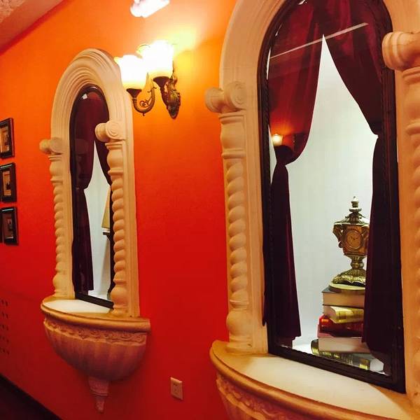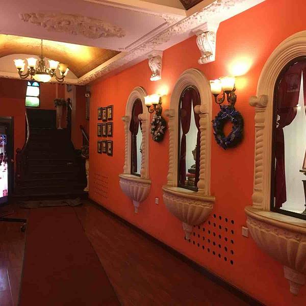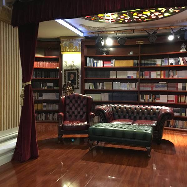 古典书架、精美的油画、欧式五彩玻璃窗户及走廊穹顶装饰体现出欧洲新古典主义风格二楼VIP
