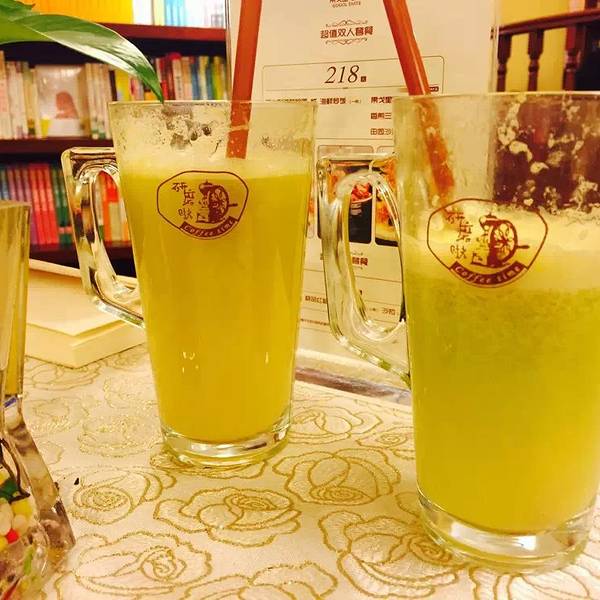 找个角落 窝在那里看看书 和朋友小小声的聊聊八卦只觉得岁月静好 现世安稳果戈里书店里也有个小小的咖啡店 顺便磨时间就点了两杯果汁果汁做起来的时间很慢 而且明明两杯果汁点的一样的
