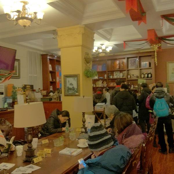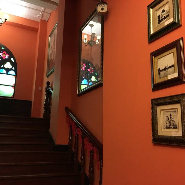 果戈里大街在若干年前叫奋斗路,果戈里大街是解放前的名字,俄风,后来改回了以前的名字,叫起来比较洋气,果戈里大街上还有很多老建筑跟欧式建筑的小细节。这家复刻的俄式建筑的很多特点,彩色窗户,大吊顶,美倒是不错的,只是缺少了一点点精气神。店里有读书分享会,分享会的举办地点是二楼大厅,其实一共两层,一楼只些简单的壁画跟旧照展,二楼大厅占据了一半的分享会,还是用麦克的那种。倒是读书心情陡降,真心有点吵,没办法认真看书,起码买书也要略读一下,也没了兴致。