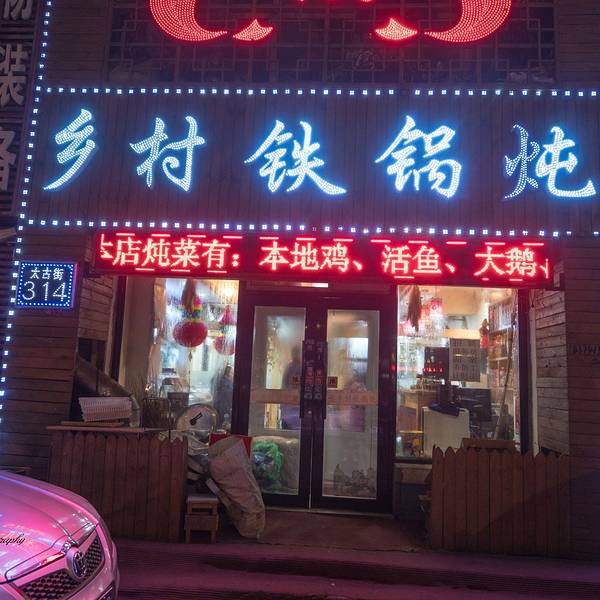 我和厦门的妞老师惦记着到东北一定要来尝一尝这里的东北乱炖,从雪乡回哈尔滨的路上就开始在网上查哪家好吃,纠结了好一会儿后来选中了百一大地锅。 不过东北人热情啊…,上了出租车和司机唠嗑了一会,直接吧我们拉到他们当地人去的一家小店了,叫乡村铁锅炖,司机大哥说他们当地人都来这里,店面一点也不起眼,一坐下周围全是闲聊的当地人,不过确实好吃啊,还近,一路上还给我们普及了一下哈尔滨美食,介绍了下东北烧烤和一个叫杀猪菜的东西...居然是烧柴火的铁锅炖,也太给力了..这里都铁锅炖继续沿袭东北菜一贯的风格--分量足坐下来生起火之后我们都觉得快要热死了,所以去吃铁锅炖切记要穿些薄点的衣服在里面..好友年代感的杯子..一边聊天,一边等着一大锅的菜慢慢炖熟,等待打开锅盖的一刹那蒸汽涌出来,然后一点一点地就着哈尔滨啤酒吃,实在是一个享受的时刻..顺便说下从隔壁桌大婶那听来的笑话: 她儿子给她打电话, 她儿子:妈,我要考公务员,要交200块钱报名费.. 她:那就交呗 她儿子:我这不是给您要钱嘛.. 她:我最近没钱.. 她儿子:那...我先给您垫上? 酒足饭饱后往回走,东北之行酒要结束了, 然而满脑子想的还是:大列巴还没有吃呢,那个传说中的路边摊烤串还没来得及去呢,还有据说很带感的杀猪菜也还没有打卡。。 我们慢慢走回去,,下雪了,地面积了一些雪,有点滑,路上有很多扫雪车已经在工作了,宽阔的大马路甚至有五六量扫雪车错落并排着扫雪的壮观景象...