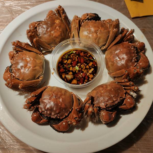 期待的夜宵 我们选择了天天向上推荐的“虾皇”龙虾五不出原则虾皇的装修风格 独具特色吃饱了才有力气减肥六只螃蟹 我们吃了近两个小时 原谅笨拙的小手 剥蟹真的是门艺术由于昨晚吃的龙虾,这次我们决定尝尝大闸蟹强烈推荐螃蟹的蘸酱 味道独特 加大了螃蟹的鲜美感