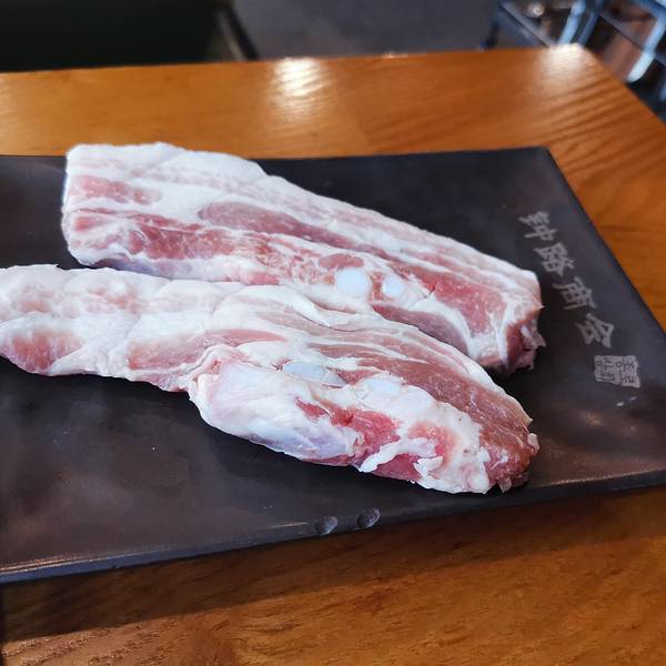 提前电话预定后准时抵达,直接被领到预留的座位,一路往里走,一路听到店员热情的招呼声。 双人开心吃肉套餐,量大、味美,真是吃得很开心: -薄切雪花牛肉、调味猪排、冷切厚五花,店员主动帮烤,一块块鲜...