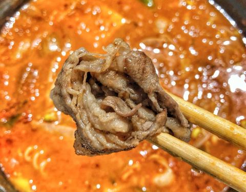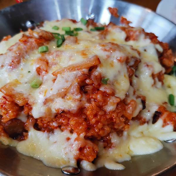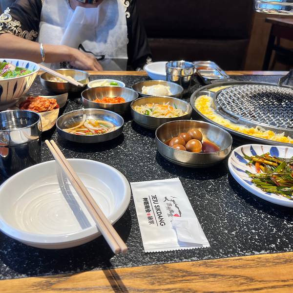 提前电话预定后准时抵达,直接被领到预留的座位,一路往里走,一路听到店员热情的招呼声。 双人开心吃肉套餐,量大、味美,真是吃得很开心: -薄切雪花牛肉、调味猪排、冷切厚五花,店员主动帮烤,一块块鲜美多汁。 -鲍鱼海鲜大酱汤,海鲜的料很足。 -一米芝士年糕,必须趁热吃的拉丝芝士配上韩式年糕,绝对美味 -冷菜大盆拌饭,实在吃不下了,打包回家。 人均130左右的韩料店,推荐。