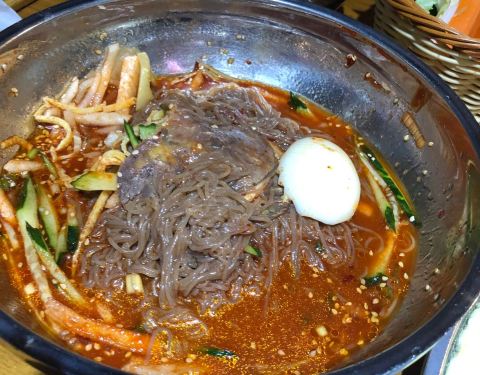来虹泉路韩国街这里逛,晚上便选了钟路商会缘家来吃饭。没想到等位要100多桌。之前在纽约法拉盛的连锁店吃,根本不用等位。所幸可以扫饭店二维码关注翻台子的进程,又再次去韩国街逛。终于可以进店吃饭也是在晚上九点后了。 个人觉得蔬菜拼盘烤出来的也挺好吃。 把烤的东西都吃完之后竟饱了。冷面只能打包了。