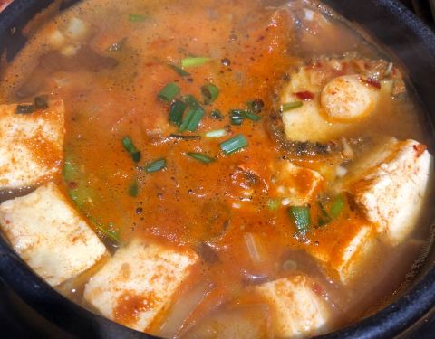 -鲍鱼海鲜大酱汤,海鲜的料很足。