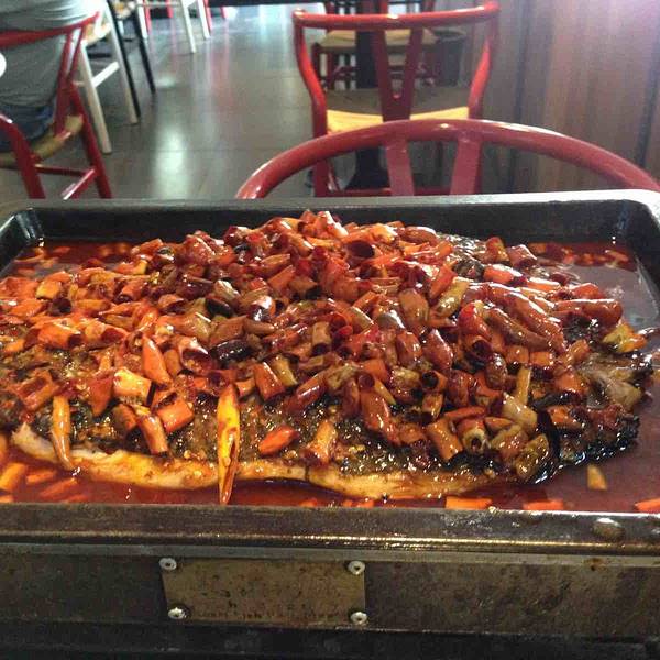 这个店靠近弯子口特别近,家是石湫的,通了新马路,从家里骑电瓶车到店里,也只花了30几分钟,去店之前我是提前一天预约的,由于天气太热,就一个人来享受美食了。到店后,接待,服务员,老板娘服务态度特别好,店里吃饭的大多数是溧水本地人,所以和她们说方言比较有亲切感。吃的第一道菜是点的香辣的烤鱼,上的第一道是口水鸡,另外,我也让服务员早点上蛋炒饭,菜上的特别快。烤鱼的味道比较好的,特别是鱼皮我觉得超级入味,然后,辣味也刚好,溧水人还是比较能吃辣的,鱼很大,分量很足,一个人吃的太多太撑了。口水鸡味道也不错的,如果能煮烂点会更入味,蛋炒饭的味道也不错的,一个人吃了好大的一碗。这家店适合聚餐,到店的时候是超过我的期望的,一开始以为是普通小店,到了以后发现确实是一家高大上的店,而且店里装潢特别美观,也很绿色。下次,会和朋友一起再去的。